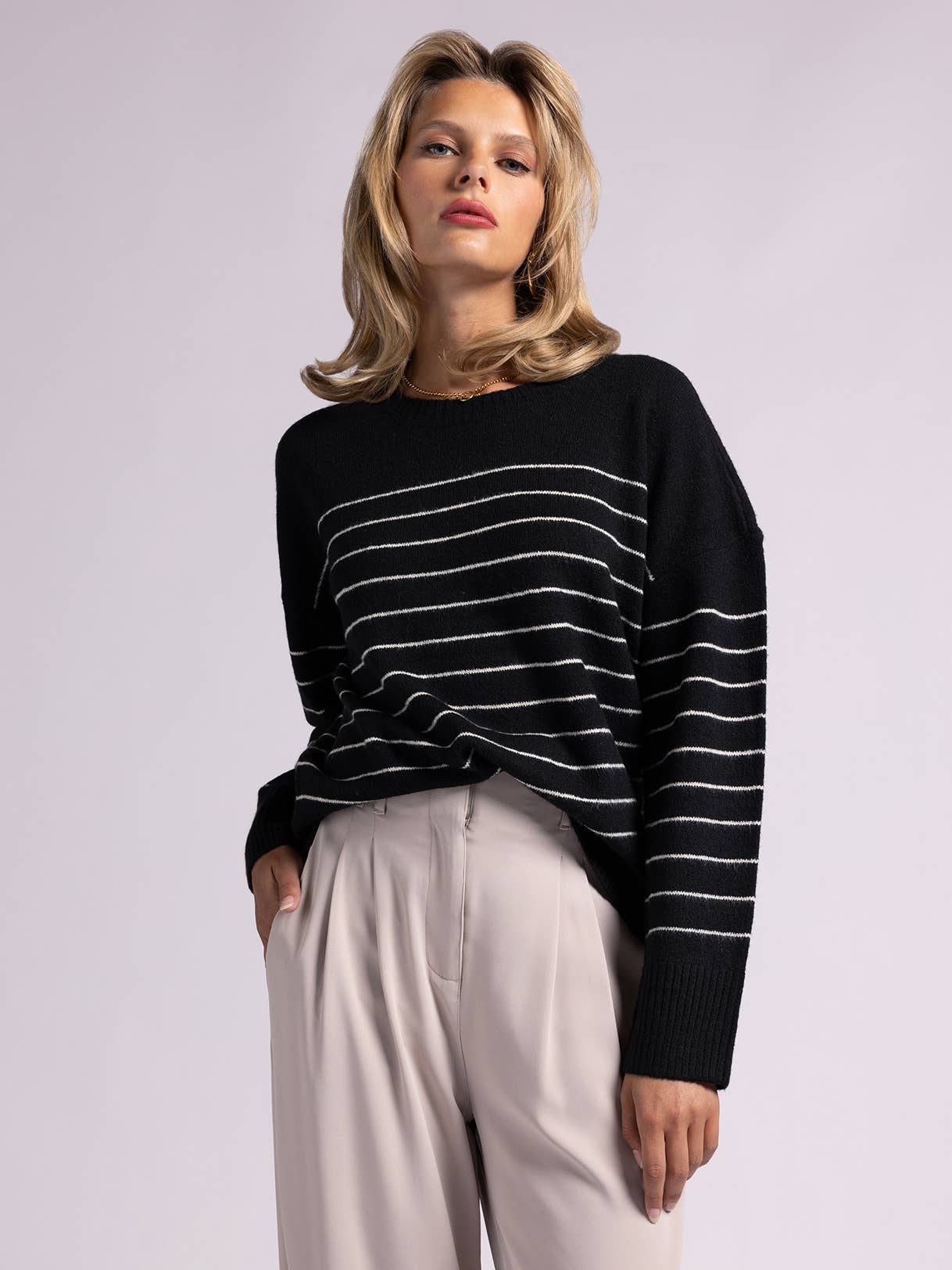 Featuring a classic crew neckline and relaxed drop shoulder silhouette, the Kisha Sweater offers a timeless appeal with a modern twist. The amazingly knitted soft fabrics ensure a luxurious feel against your skin, providing ultimate comfort throughout the day.